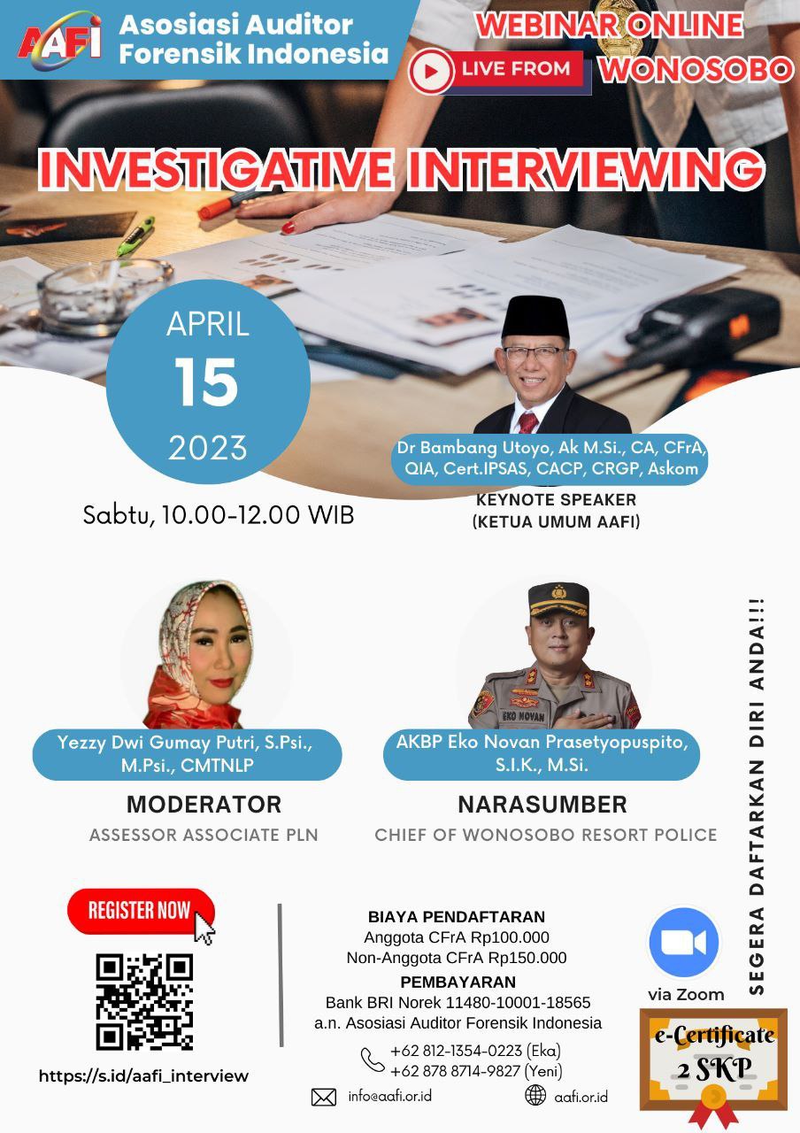 Asosiasi Forensik Auditor Indonesia (AAFI MEUKISI) mengundang Bapak/Ibu dalam Webinar Online dengan Tema INVESTIGATIVE INTERVIEWING