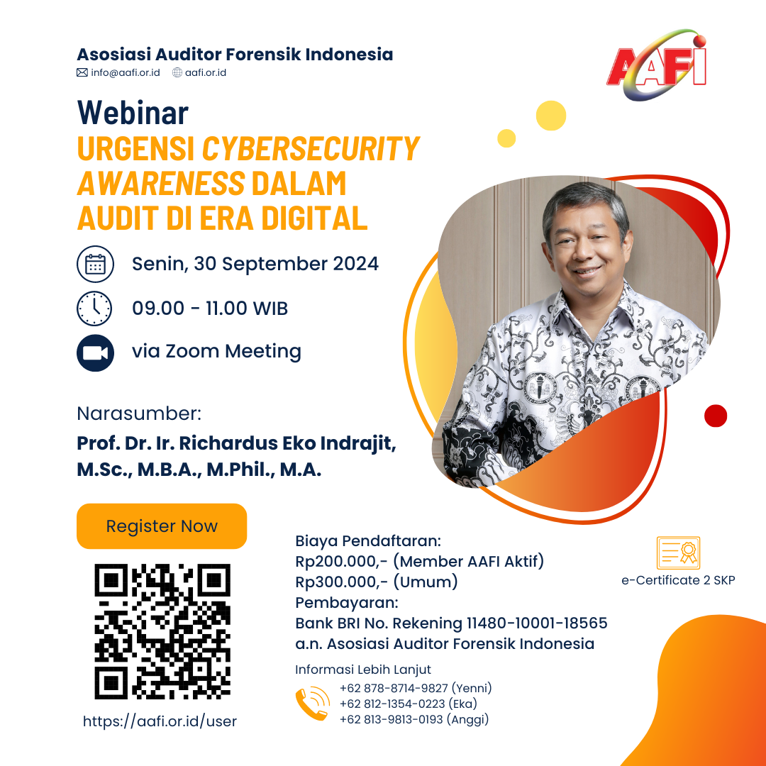 Asosiasi Auditor Forensik Indonesia Meukisi (AAFI MEUKISI) mengundang Bapak/Ibu dalam Webinar Online dengan Tema: Urgensi Cybersecurity Awareness dalam Audit di Era Digital